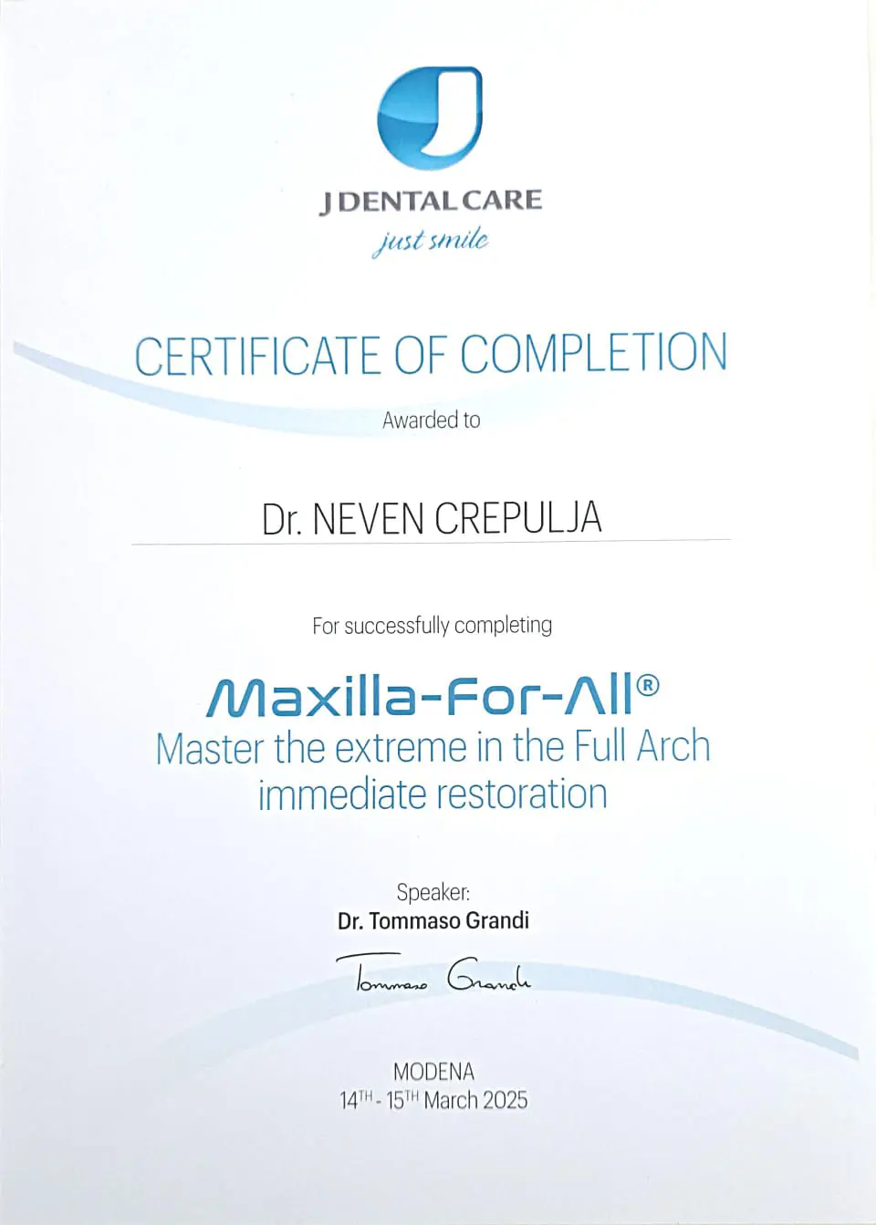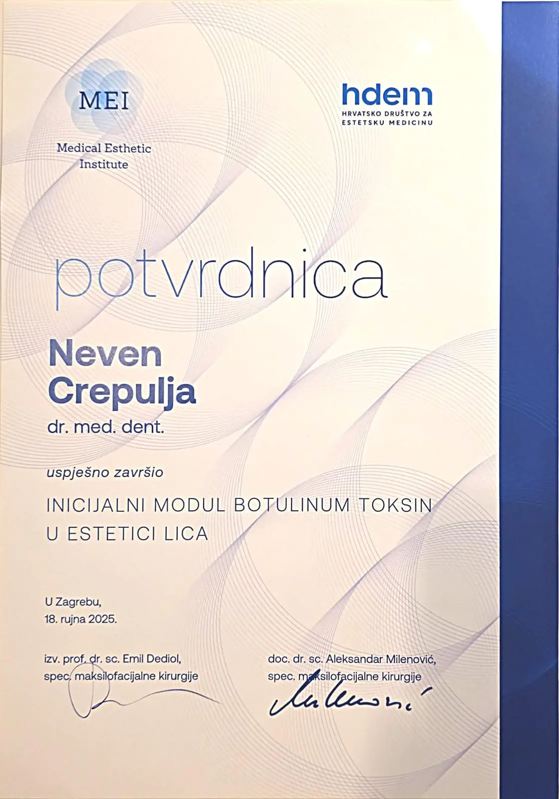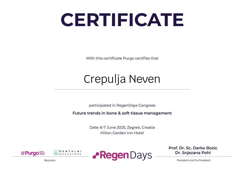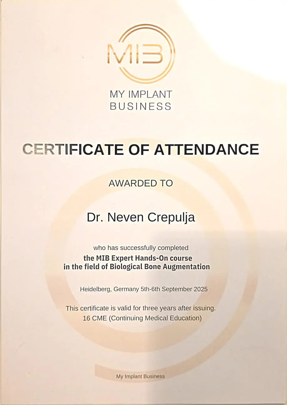 Dodatne kontinuirane medicinske edukacije su iznimno važne i našim pacijentima osiguravaju pristup najnovijim dostignućima moderne stomatologije.